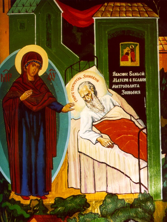 Однажды святого посетила в его келье Сама Пресвятая Богородица. Старец тогда уже тяжело болел и был прикован к постели. Консилиум врачей предсказал смерть в течение двух дней. Владыка лежал на кровати, обратив взор на икону Божией Матери «Целительница», и всецело предался воле Божией. Пресвятая Владычица явилась к нему в келью и благословила его. После посещения Пресвятой Богородицы старец неожиданно для всех стал быстро поправляться. Он прожил на земле еще целых 13 лет [22].